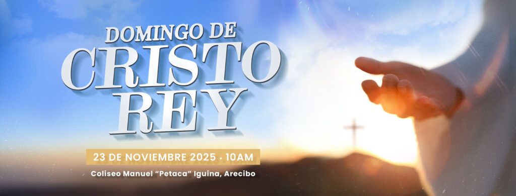 La Diócesis de Puerto Rico te invita a celebrar juntos la gran solemnidad de Cristo Rey el domingo, 23 de noviembre de 2025, a las 10:00 a.m., en el Coliseo Manuel “Petaca” Iguina de Arecibo. Mira el vídeo de invitación: https://www.facebook.com/reel/1471960070772054