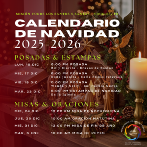 Calendario de Navidad 2025-2026 19 noviembre 2025 Noticias Te invitamos a unirte a nosotros en nuestras Posadas, Estampas y celebraciones litúrgicas esta Navidad...